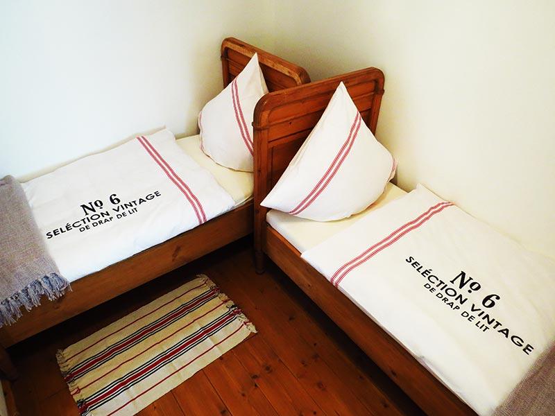 2 getrennte Schlafzimmer,1 Doppelbett für Eltern und 2 Einzelbetten ( 1m x 1,9 m )